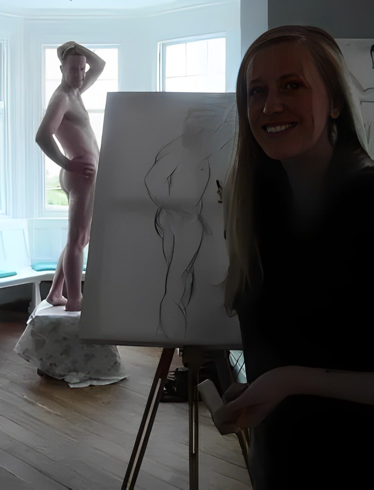 Please do not enter this website & gallery of images if you are likely to be offended by explicit images, life drawings & still photographs featuring a male life model posing nude or if artistic art nude images of a male nude life model posing with naked female life models will cause any offence